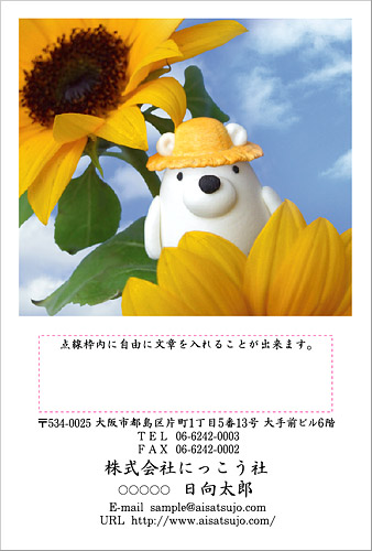 文字のレイアウト変更、差出人文字サイズ変更、ロゴ挿入、顔写真挿入などのカスタマイズをご希望の方は、個別レイアウト対応(有料)をお申し込みください。
