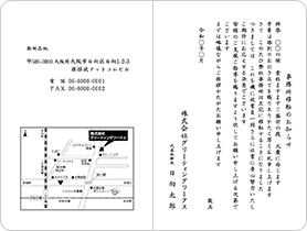 挨拶状にカラーの地図、カラーのロゴ、写真の挿入をご希望の場合は、挨拶状の基本料金に各種オプションの挿入費用とカラー印刷料金の追加が必要となります。